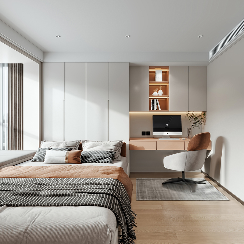 現代簡約小臥室榻榻米定制整體書柜踏踏米床組合衣柜一體