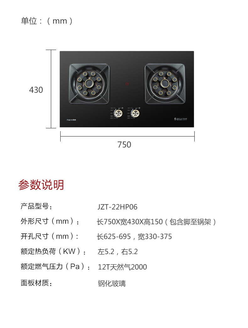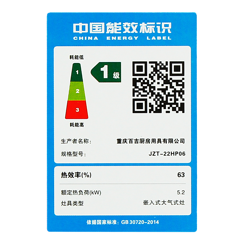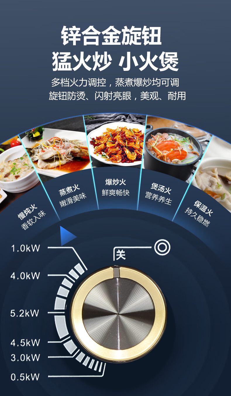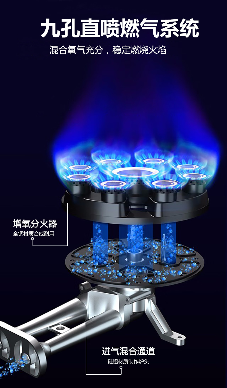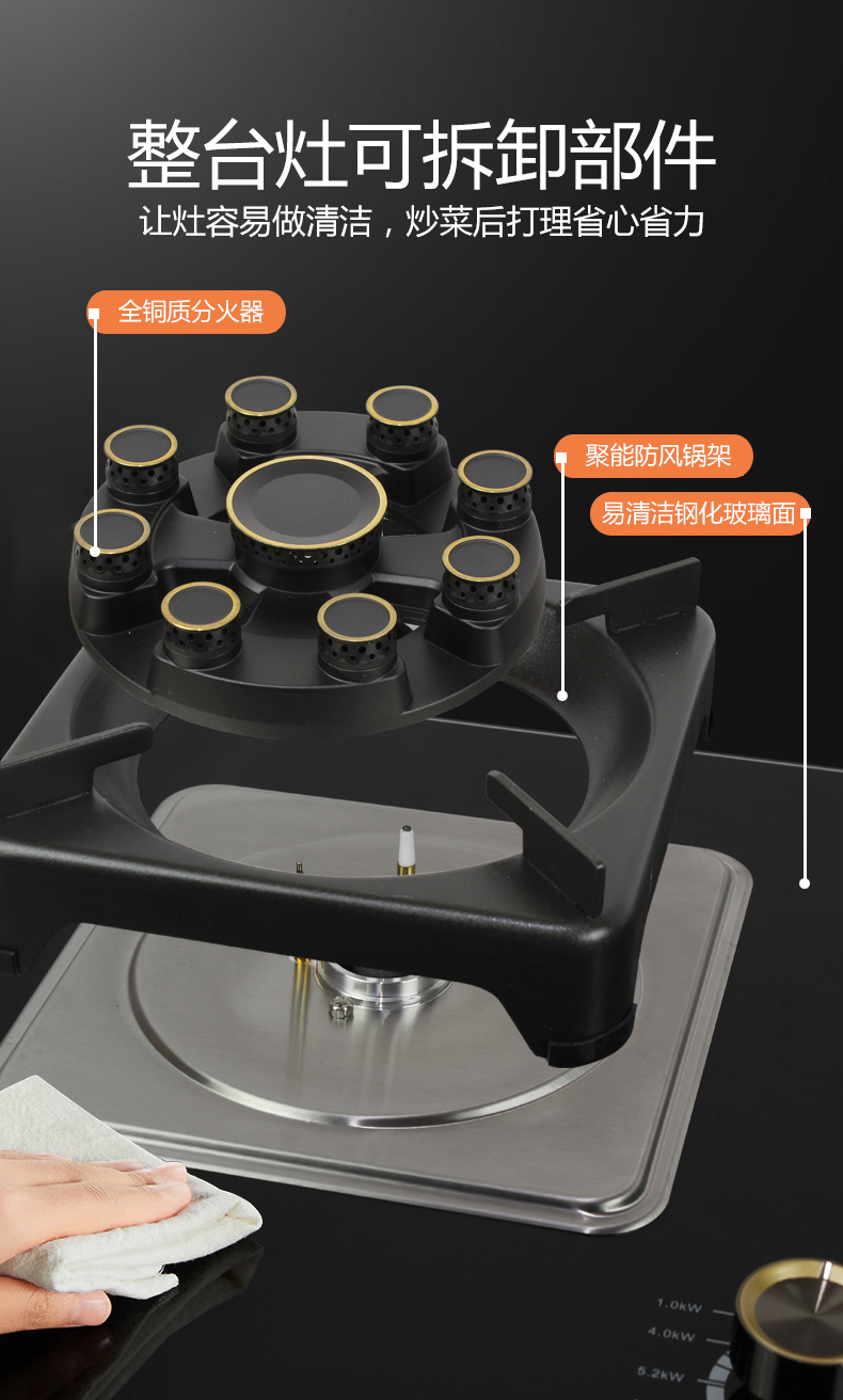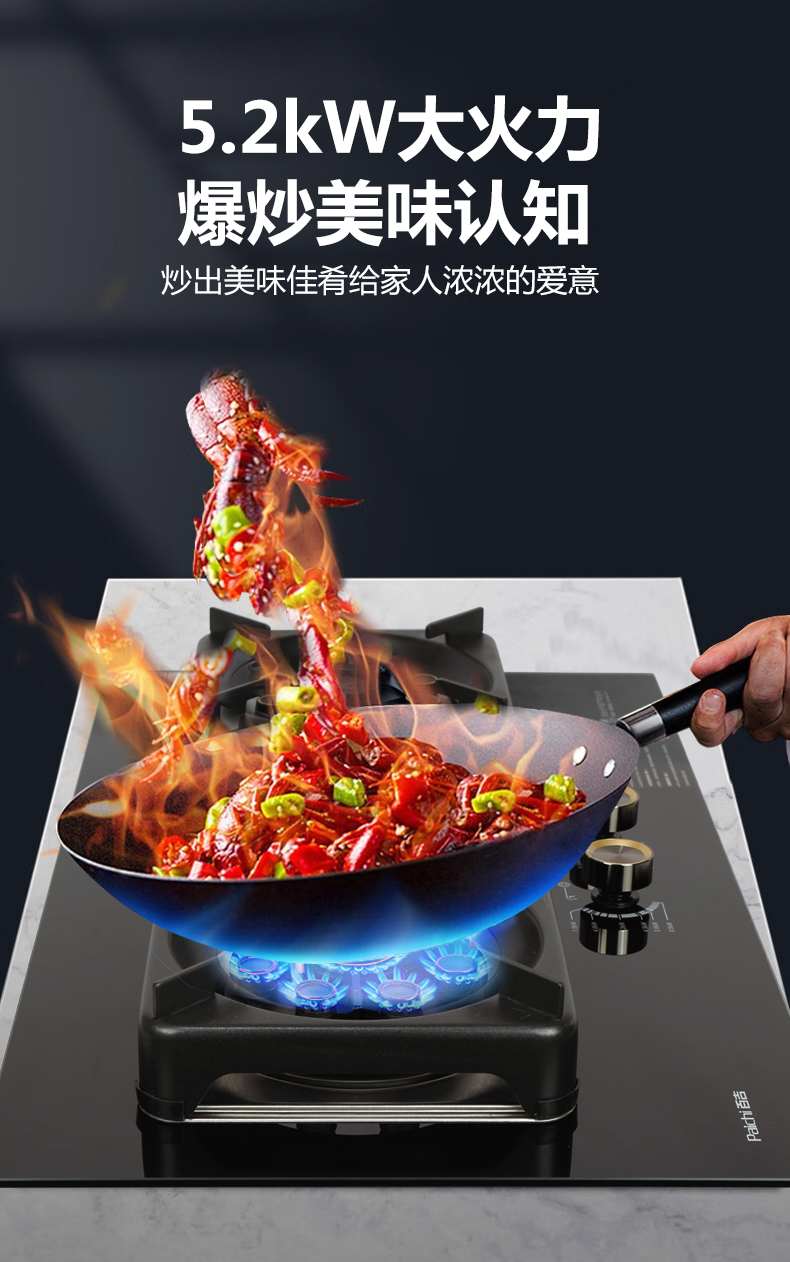 5.2kW聚能猛火灶,63%熱效率一級能效,帶熄火保護裝置
