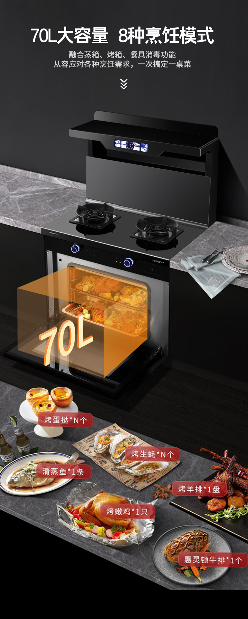 900寬集成灶5.2kW蒸烤箱一體